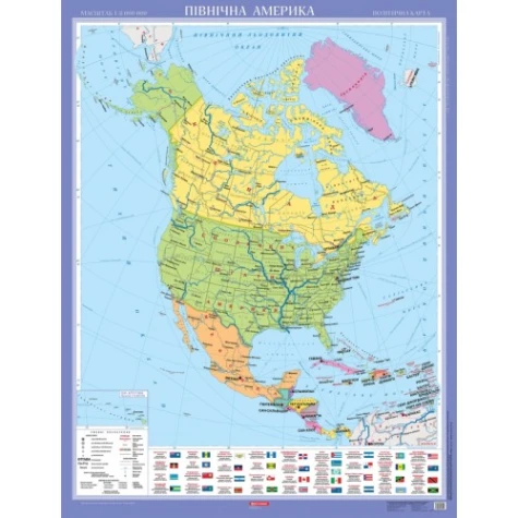 Політична карта Північної Америки картон м-б 1:8 000 000