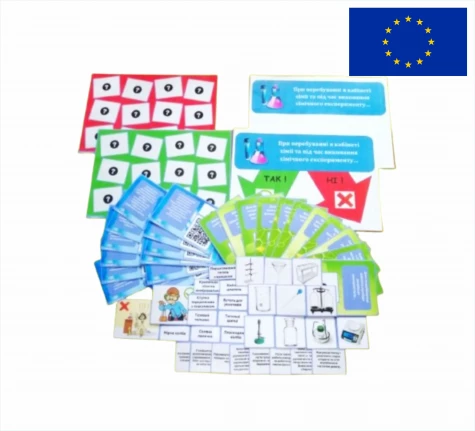 Також, у комплект входять картки з завданнями практичного спрямування. Для вирішення цих завдань, учням доведеться пригадати все раніше вивчене про лабораторний посуд, обладнання і його призначення; проаналізувати та співставити все вищезгадане з завданням і, після цього, обрати правильну відповідь.