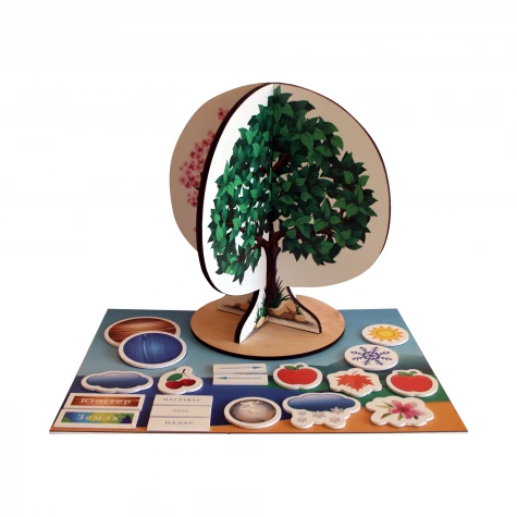 Набір призначений для використання на уроках природознавства в початковій школі як демонстраційний матеріал. Даний комплект розвиває компетентність дітей у галузі природничих наук, формує допитливість, спостережливість, активність, бажання дізнаватися нову інформацію та генерувати нові ідеї. Створює сприятливі передумови для пізнання навколишнього світу шляхом дослідження, вчить формувати припущення та робити висновки. До складу входить: - планшет-плакат для пояснення кругообігу води в природі, магнітна основа, 400*300 мм – 1 шт.; - розбірне дерево (всі пори року), 300*300 мм – 2 частини; - підставка, 200 мм – 1 шт.; - магніти: назви планет (10 шт.) та їх зображень (10 шт.); природні явища – 5 шт.; для розміщення на розбірному дереві (листя, квіти, плоди) – 12 шт.; слова для позначення кругообігу води в природі – 7 шт.; стрілки для позначення кругообігу води в природі – 5 шт.