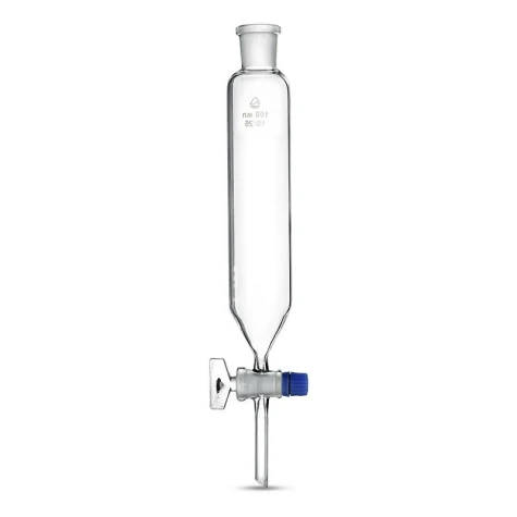 Воронка ділильна, не менше 100 мл. Для відокремлення двох рідин, що не змішуються (з колбою перегінною з нижньою відвідною трубкою / Вюрца для добування деяких газів).
