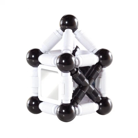 Магнітна іграшка-конструктор з чорно-білими елементами. Деталі великого розміру з рифленою поверхнею для зручного захоплення і вбудованими магнітами ідеально підходять для маленьких рук. Стрижні різного розміру і форм дозволяють створювати різні фігури. Металеві кульки призначені для надійного з'єднання елементів. Матеріали: пластикові стрижні, металеві кульки, магніти, акрилові панелі. Іграшка розвиває творчі здібності, самосвідомість, принципи симетрії, тактильні відчуття. Конструктор підходить для навчання дитини за системою Монтессорі. Вік: від 2 років.