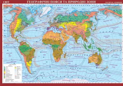 Все про товар Карта світу. Географічні пояси та природні зони м-б 1:19 000 000. Навчальна карта картон.