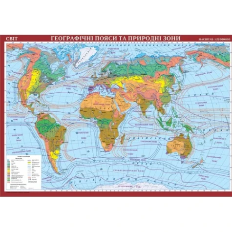 Все про товар Карта світу. Географічні пояси та природні зони м-б 1:19 000 000. Навчальна карта картон на планках.