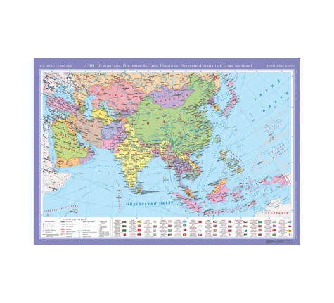 Все про товар Світ. Азія (Центральна, Південно—Західна, Південна, Південно—Східна та Східна частини). Політична карта. М—б: 1:8 000 000 (картон на планках)