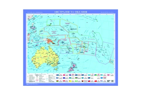 Австралія та Океанія політична карта на планках м-б 1:10 000 000