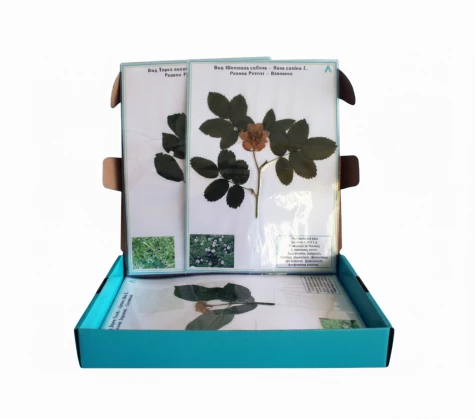 Гербарій із 10 ламінованих зразків рослин призначений для використання на уроках біології як демонстраційний матеріал, що допомагає учням вивчати різновиди та будову рослин.