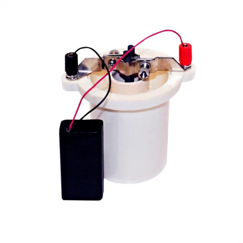 Для проведення експериментів додатково потрібне джерело постійної напруги на 4 - 6 В, амперметр, вольтметр, розчин кухонної солі, мідного купоросу та сірчаної кислоти. До складу входить: пластмасові посудини – 2 шт.; кришка з двома універсальними зажимами і індикатором – 1 шт.; кришка посудини – 1 шт.; електроди з графіту – 2 шт.; електроди свинцеві – 2 шт.; електрод цинковий (оцинковане залізо) – 1 шт.; електрод мідний – 1 шт.; контактор – 1 шт.