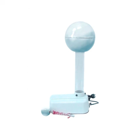 Генератор Ван де Граафа використовується в кабінеті фізики для проведення демонстраційних дослідів з електростатики. За допомогою приладу демонструють електризацію тіл, перенесення зарядів і створення високої напруги, покази іскрового газового розряду в повітрі. Електростатичний генератор складається з верхнього діелектричного та нижнього металевого роликів (нижній ролик з'єднаний з землею). На роликах обертається шовкова або гумова стрічка, один з її кінців укладений в металеву сферу. Зверху і знизу на невеликій відстані від стрічки знаходяться два електрода в формі щіток. На один з електродів подається електричний потенціал, а інший з'єднаний з внутрішньою поверхнею сфери. Комплектація: генератор Ван де Граафа - 1шт.; інструкція з експлуатації. Технічні характеристики: розміри (Д×Ш×В) - 32×55×17 см; вага, не більше 6,6 кг.