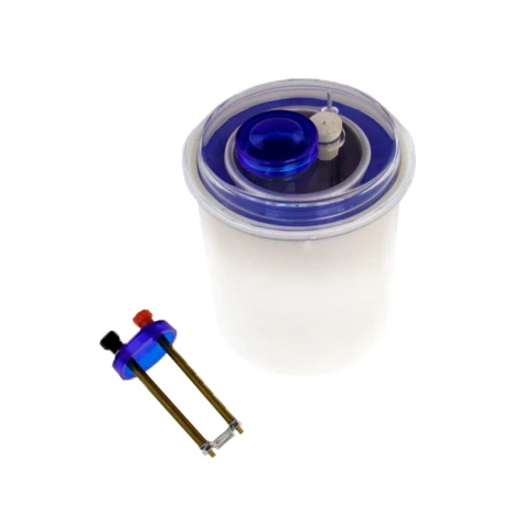 Калориметр зі спіраллю-резистором використовується в кабінеті фізики загальноосвітнього навчального закладу під час вивчення молекулярної фізики і термодинаміки. Прилад призначений для визначення теплоємності твердих тіл. Калориметр дозволяє автономно нагрівати воду безпосередньо у середині приладу завдяки наявності спіралі-резистора. На верхній частині колодки розташовані клеми для підключення джерела живлення. Зовнішній стакан має теплоізолюючу вставку з порожниною для розміщення внутрішнього стакана. Забезпечує усвідомлення учнями основ фізики як науки; допомагають засвоїти основні фізичні поняття та закони та застосувати їх на практиці. Набір допоможе вдосконалити досвід впровадження експериментальної діяльності. До складу входить: зовнішній стакан (висота 14 см, діаметр 10,5 см); внутрішній стакан з алюмінію (висота 7 см, діаметр 6 см, об'єм 200 мл) ; кришка; колодка із спіраллю; мішалка; пробка з отвором для термометра.
