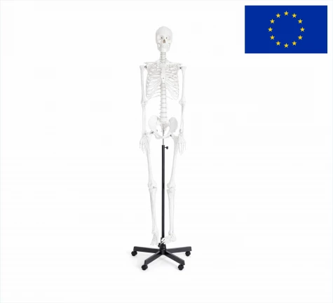 Модель скелету людини в повний зріст створена для демонстрації на уроках біології та пояснення теми «Анатомія людини». Сприяє кращому розумінню та засвоєнню будови людського скелета та розташування кісток (мозкового відділу черепа, ключиці, лопатки, тазових кісток, ребер, колінної чашечки, шийних хребців, плечових кісток, грудних хребців, грудини та ін.). Може використовуватись для проведення контрольних, лабораторних робіт, усних опитувань.