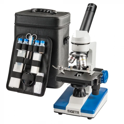 SIGETA UNITY PRO 40x-640x - монокулярний біологічний мікроскоп з металевим корпусом і подвійним LED-підсвіткою, який прекрасно підійде як для навчання в шкільних лабораторіях, так і для виїзних аматорських досліджень. Мікроскоп обладнаний 3 об'єктивами (4x, 10x, 40x) і має в комплекті два ширококутних окуляра (10x і 16x). Найбільше оптичне збільшення зі стандартним набором становить 640 крат. З таким збільшенням Ви можете детально вивчати будову клітин рослин або тварин, а також зразки тканин людського організму.
