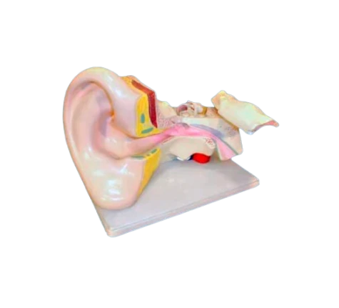 Модель використовується для демонстрації на уроках біології. Призначена для проведення контрольних, лабораторних робіт, а також усних опитувань при вивченні розділу «Людина». Модель є розбірною, демонструє будову вуха людини. Кольором виділені деталі будови вуха людини, а саме – вушна раковина, равлик, зовнішній слуховий прохід, вестибулярний апарат, барабанна перетинка, слухова труба, слухові кісточки. До складу входить: методичні рекомендації по експлуатації; модель вуха; підставка. Характеристики: Матеріал: пластик Колір: природні кольори Комплектація: 3 шт. Розміри: 110*70*70 мм