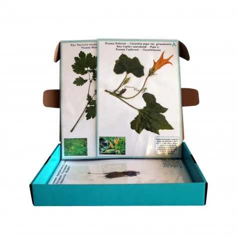 Гербарій використовується в якості демонстраційного матеріалу під час вивчення біології в загальноосвітній школі. В гербарії представлені зразки, засушені та прикріплені до листів А4 формату. Також на гербарних листах міститься назва зразка та повнокольорове фото зображення рослини. Всі гербарні листи ламіновані, що не пошкоджує натуральний зразок. До складу входить: - 10 гербарних зразків – гречка, кабачок, кропива, мох зозулін льон, мох сфагнум, мох Шребера, огірок, папороть (щитовник чоловічий), хвощ, чистотіл. Характеристики: Матеріал: ламіновані листи формату А4 Комплектація: 10 шт. Гербарій постачається в картонній коробці розмірами 320*250*45 мм.