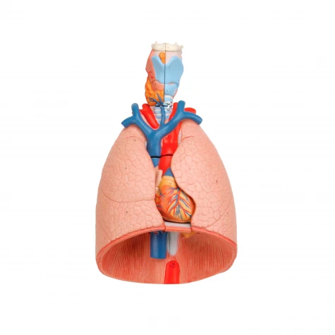 Модель використовується для демонстрації на уроках біології. Призначена для проведення контрольних, лабораторних робіт, а також усних опитувань при вивченні розділу «Людина», «Дихальна система». Модель є розбірною, демонструє будову легенів людини, зокрема бронхіальне дерево, бронхіоли і альвеоли, легеневі артерії, легеневі вени, нерви, лімфатичні судини, легенева плевра. До складу входить: методичні рекомендації по експлуатації; модель гортані, серця, легенів; підставка.