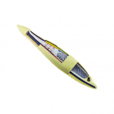 Модель створена для демонстрації зовнішньої та внутрішньої будови ланцетника. Застосовується на уроках біології в загальноосвітній школі під час вивчення розділу «Рослини». До складу входить: керівництво по експлуатації; хорда; нервова трубка; рот; зяброві щілини; кишка; хвостовий плавник. Характеристики: Матеріал: пластик Колір: яскраві природні кольори Розміри: 270*50*12 мм Комплектація: 7 шт. Набір постачається в картонній коробці розміром280*62*18 мм.