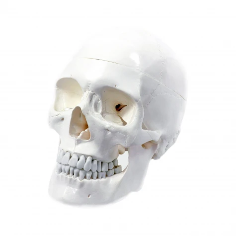 Використовується в кабінеті біології загальноосвітнього навчального закладу під час вивчення розділу «Людина» для демонстрації будови черепа людини, розбірна. Верхня половина черепу від'єднується. Нижня щелепа з'єднана з моделлю рухомим пружинним кріпленням. Має натуральну величину. Матеріал: міцна пластмаса