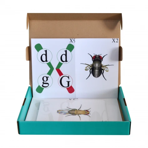 Модель використовується для кабінету біології загальноосвітнього навчального закладу при вивченні розділу «Загальна біологія» теми «Генетика». Демонструє статеві клітини, з яких на дошці монтується процес перехресту хромосом (кросинговер). До складу входить: - керівництво по експлуатації; - 18 ламінованих карток, оснащених магнітним кріпленням – картки із зображенням мух дрозофіл – 6 шт.; картки із зображенням хромосом – 8 шт.; картки із позначенням відсоткового співвідношення особин із різними ознаками в потомств – 4 шт. Характеристики: Матеріал: ламіновані листи формату А4 та А5 Комплектація: 19 шт. Модель постачається в картонній коробці розмірами 320*250*45 мм.