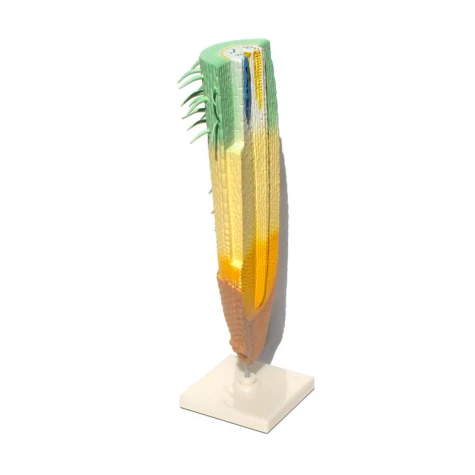 Модель створена для демонстрації зовнішньої та внутрішньої будови кореня в поздовжньому розрізі на гістологічному рівні на уроках біології в загальноосвітній школі. Демонструє найменші деталі будови кореневої частини, зокрема провідні пучки, кореневі волоски тощо. Кріпиться на стійкій підставці. До складу входить: керівництво по експлуатації; модель кореня у розрізі. Характеристики: Матеріал: пластик Колір: яскраві природні кольори Розміри: 175*45 мм Комплектація: 2 шт. Набір постачається в картонній коробці розміром 160*50*40 мм.