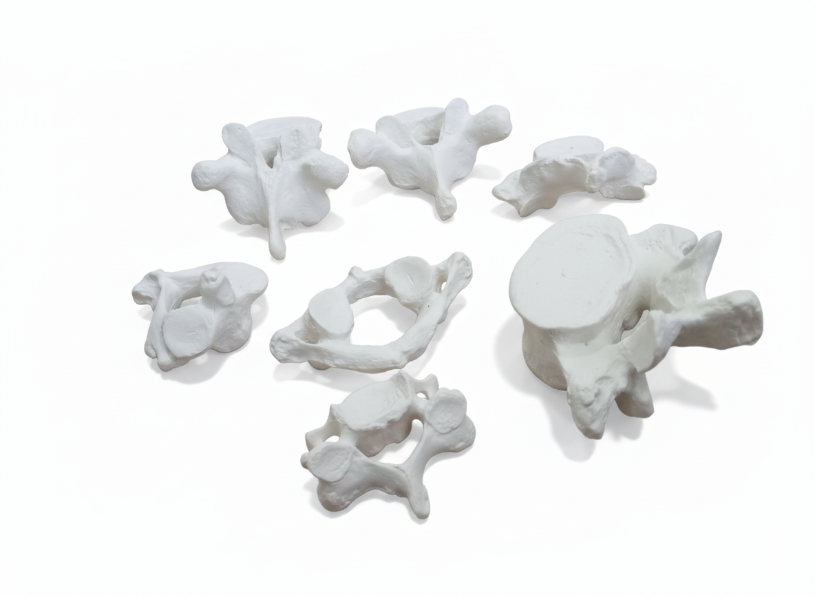 Об’ємні моделі хребців людини з пластику в натуральних кольорах призначені для вивчення їх будови та функцій на уроках біології.