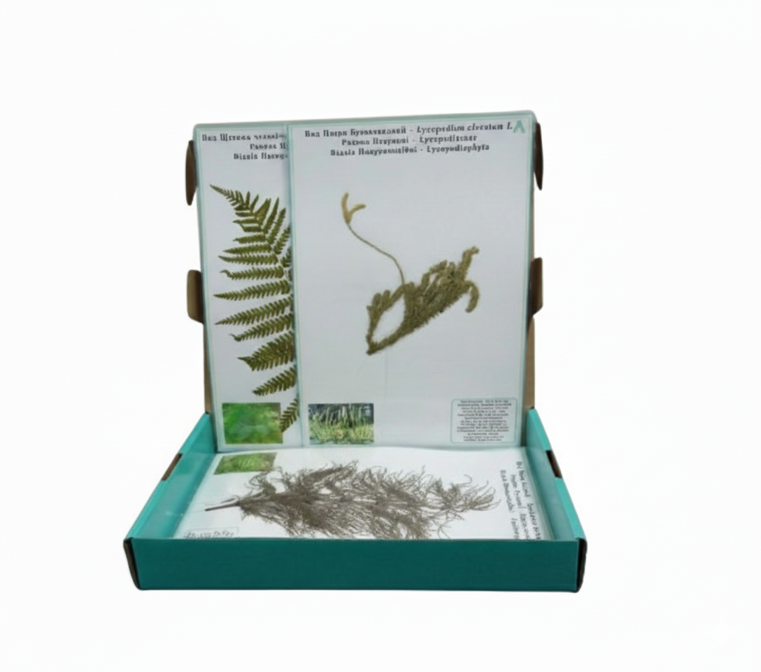 Гербарій із 10 ламінованих зразків спорових рослин використовується як демонстраційний матеріал на уроках біології для вивчення різновидів мохів, хвощів, плаунів і папоротей.