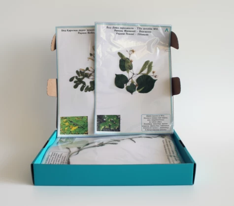 Гербарій містить 27 ламінованих зразків рослин із назвами та фото, призначений для демонстрації та вивчення закономірностей функціонування живих систем на уроках біології в загальноосвітній школі.