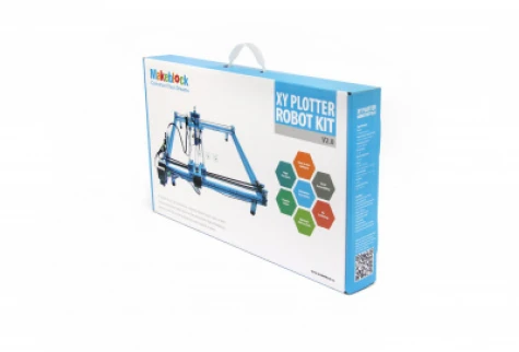Makeblock - це конструктори, що складаються з різних алюмінієвих деталей, що доповнюють конструкцій, комплектуючих механізмів, за допомогою який можна зібрати різні роботизовані моделі. Роботи Makeblock будуть цікаві як школярам, так і дорослим. Всі набори мають докладні інструкції, в яких просто описано способи складання роботів. Деталі Makeblock алюмінієві міцні і надійні, забезпечують зібраної конструкції стійкість. Особливості моделі Makeblock XY Plotter Robot kit v2.0 XY Plotter Robot kit v2.0 - конструктор, за допомогою деталей якого можна сконструювати графопостроителей, робот-художник. Роботом можна керувати через спеціальне програмне забезпечення. У наборі є все необхідне для створення роботизованого графопостроителей: механічні деталі, сенсори, кроковий двигун, Arduino сумісний контролер Makeblock Orion, інша електроніка. «Робоча» частина плоттера - платформа з олівцем або ручкою, яка ковзає по осях. Набір допоможе вивчити основи Arduino і інших мов програмування. У комплекті численні алюмінієві і пластикові скріпляє деталі, кронштейни, вали, балки і т.д. Набір в стильною фірмової картонній коробці. Для конструктора призначена спеціальна програма mDraw.