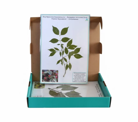 Гербарій містить 10 ламінованих зразків рослин із назвами та фото, призначений для демонстрації та досліджень на уроках природознавства у початкових класах.