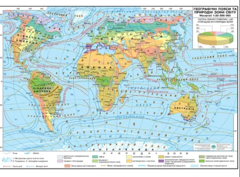 Все про товар Географічні пояси та природні зони світу М1: 22 000 000 ламінована