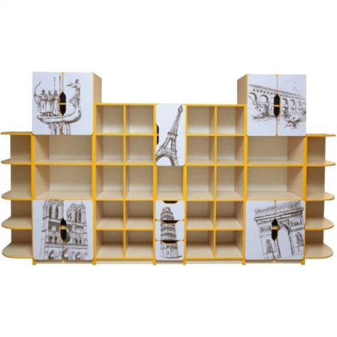 Стінка призначена для умеблювання дитячих садків та молодшої школи, можлива різнопланова комбінація елементів, є функціональною і призначена для зберігання дидактичного матеріалу, книг, папок, особистих речей дітей.