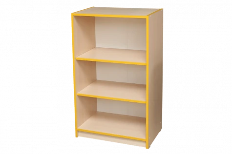 Стінка універсальна "Школа-Сад" елемент №7 Габаритні розміри: 600х410х1012 мм. Вага: 22,00 кг. Стелаж відкритий з 2-ма поличками (3 ніші). Виготовлений з ДСП товщиною 16 мм. Задня стінка виготовлена з білої ламінованої ДВП товщиною 3 мм. Оклейка: ПВХ жовтого кольору товщиною 1 мм. Колір корпусу: бук або дуб молочний.