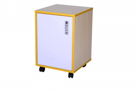 Тумба учителя з дверцею, призначена для обладнання навчальних приміщень. Має вкладну регульовану полицю та встановлена на коліщата