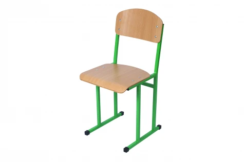 Стілець полозковий на квадратній трубі, ростова група №6 з покриттям HPL Габаритні розміри: 380х442х847 мм. Розміри сидіння: 380х350 мм, розміри спинки: 380х200 мм. Вага: 4,14 кг. Сидіння та спинка виготовлені з гнуто-клеєної фанери (товщиною 8-9 мм) та вкриті пластиком HPL товщиною 0,4-0,5 мм. Кути сидіння і спинки та передня крайка сидіння мають радіус заокруглення для запобігання травмування. Каркас стільця виготовлено з квадратної труби 20х20х1,2 мм з нанесенням порошкової фарби. Спинка та сидіння кріпляться до каркасу гвинтами та гайками. На торцях каркасу закріплені пластикові наконечники, які запобігають травмуванню учнів та пошкодженню підлоги. Колір каркасу: салатовий (RAL6018), сірий(RAL7035), жовтий. Колір HPL: бук, дуб молочний, жасмін, блакитний. Можливі комбінації кольору каркасу та HPL: - жовтий каркас - HPL бук, дуб молочний, жасмін, блакитний; - сірий каркас - HPL бук, дуб молочний; - салатовий каркас - HPL бук, дуб молочний.