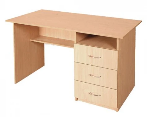 Виготовлено із ДСП ламінованої 18 мм; дно шухляд - ДВП ламінована біла 3 мм. Фасади шухляд, стільниця - ПВХ 1мм. Стійки, екран, полиця - ПВХ 0,5 мм.