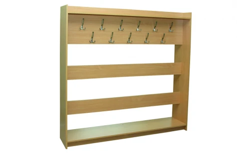 Вішалка двобічна з ДСП (22 гачка) Габаритні розміри: 1783x381х1750 мм. Вага: 60 кг. Використовується ДСП 18 мм та ПВХ - 0,5 мм. Колір ДСП: бук.