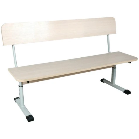 Лава зі спинкою 2-місна, регульована по висоті, на плоскоовальній трубі, ростові групи №4-6 Габаритні розміри: 1200х300х380-460 мм. Вага: 12,65 кг. Деревинні деталі лави зі спинкою виготовлені з ДСП ламінованої, товщиною не менше 16 мм. Крайки всіх деревинних елементів личкуються матеріалом для крайок – ПВХ 1,0 мм та 0,5 мм. Металеві частини лави зі спинкою виготовлені з плоскоовальних труб 50х30х1,2 мм, 38х20х1,2 мм та квадратної 20х20х1,2 мм, а також мають захисне декоративне покриття – емаль порошкова. Регулювання висоти лави зі спинкою здійснюється за допомогою гвинтів по отворах каркасу і ніжки, між якими встановлена пластикова перехідна втулка. На торцях каркасу закріплені пластикові наконечники, які запобігають травмуванню учнів та пошкодженню підлоги. Колір ДСП: бук, дуб молочний. Колір каркаса: салатовий (RAL6018), сірий (RAL7035), жовтий.