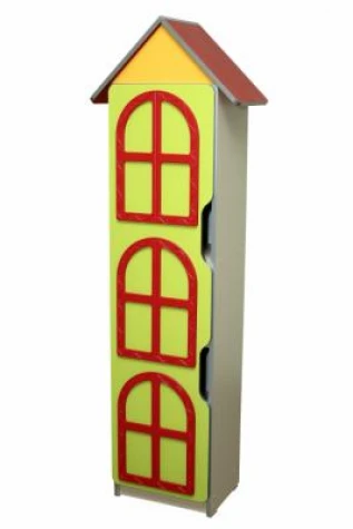 Стінка дитяча "Квіткова поляна" №8 "Вежа" з дверима Габаритні розміри: 566x320x1776 мм. Вага: 18,80 кг. Матеріал: корпус, полиці - ДСП ламінована, товщина 16 мм. Задня стінка: ДВП ламінована біла 3 мм. Фасад оклеєний крайковою стрічкою ПВХ - 1 мм; інші частини ПВХ - 0,5 мм кольору "алюміній". Фасади оздоблені тематичними МДФ накладками червоного кольору. Колір: крем, жовтий, лайм, червоний.
