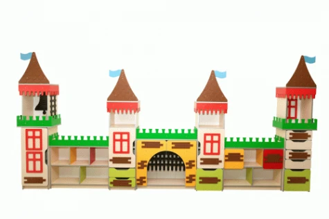 Стінка дитяча "Високий замок" елемент №4 Габаритні розміри: 900х380х930 мм. Вага: 30.5 кг. Матеріал: корпус, полиці - ДСП ламінована, товщина 16 мм. Задня стінка: ДВП ламінована 3 мм. Фасад оклеєний крайковою стрічкою ПВХ - 1 мм; інші частини - ПВХ 0,5 мм. З оздобленням 10 мм фарбованим МДФ коричневого, зеленого, та чорного кольорів. Колір ДСП: крем, жовтий.