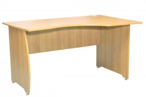 Стіл письмовий кутовий Габаритні розміри: 1400х900х750мм. Вага: 38,16 кг. - виготовлений з високоякісної ДСП ламінованої товщиною 18 мм; - оклейка протиударною кромкою ПВХ-1мм, що забезпечує надійність експлуатації; - використання якісної фурнітури і комплектуючих, зокрема мініфіксів, що спрощує процес збирання й розбирання меблів, а також дозволяє проводити його багаторазово і без ушкодження кріпильних елементів; - конструкцією передбачено отвори для проводів офісної техніки, які закриті заглушками; - можливість використання як самостійного предмету інтер`єру, так і в поєднанні з іншими столами та тумбами офісної серії. Колір ДСП: бук, дуб молочний.