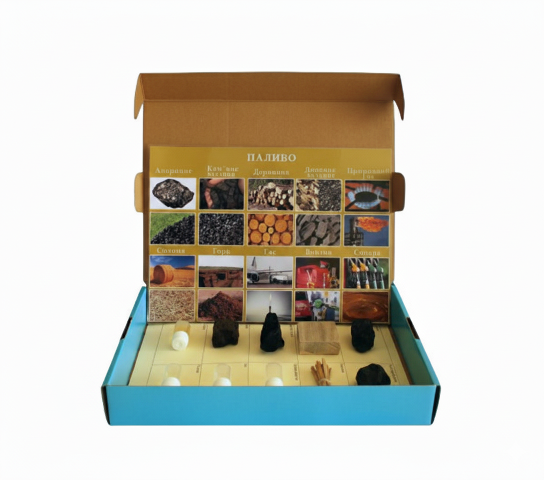 Колекція демонструє різні види палива, їхні властивості та сфери використання, допомагаючи учням засвоїти основи хімії та правила поводження з паливними матеріалами.