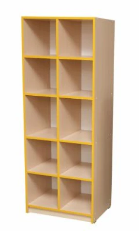 Габаритні розміри: 600х410х1594 мм. Стелаж відкритий з 10-ма комірками. Корпус стелажа виготовляється з ламінованої ДСП товщиною 16 мм. Колір корпусу: бук, дуб молочний.