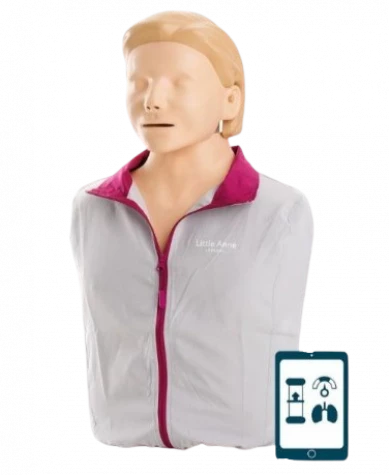 Спеціальна грудна пластина імітує, як анатомічні особливості грудної клітини дорослої людини, так і глибину компрессій. У манекені змінними є торс, грудна клітка і легені манекена.