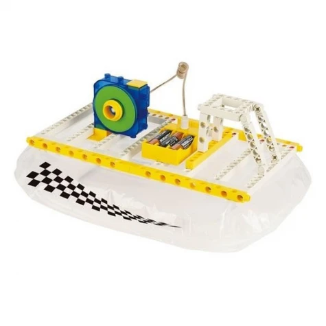 Основа этого набора - воздушная турбина, которая демонстрирует принцип работы фена или пылесоса. Ребенок сможет собрать катер на воздушной подушке и запустить его в путешествие по воде или суше. Также ребенок может построить собственный пылесос и помогать с уборкой по дому.