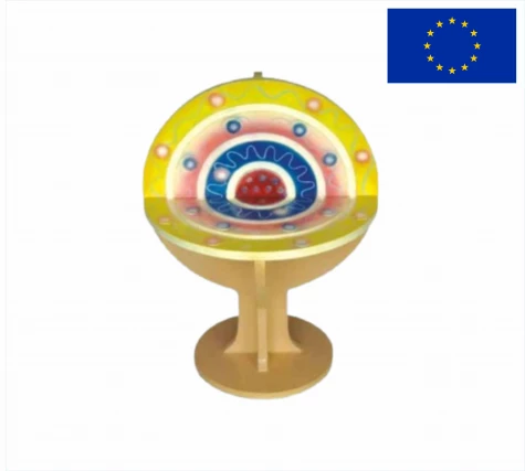Для наочного представлення планетарної моделі атома з можливістю визначення кількості частинок (протонів, електронів нейтронів). Виділена область ядра.