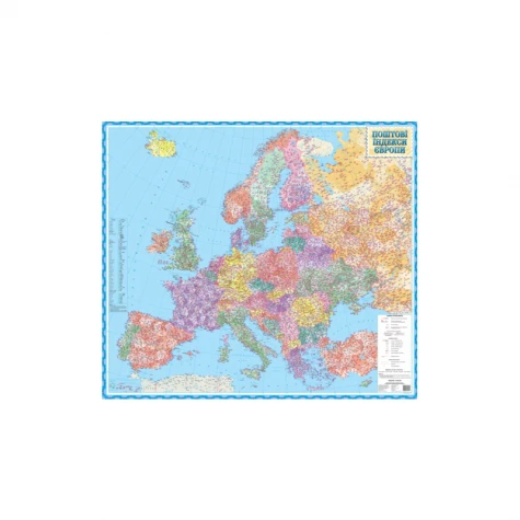 Все о товаре Почтовые индексы Европы, М-б: 1:4 000 000 (ламинированный картон на планках).