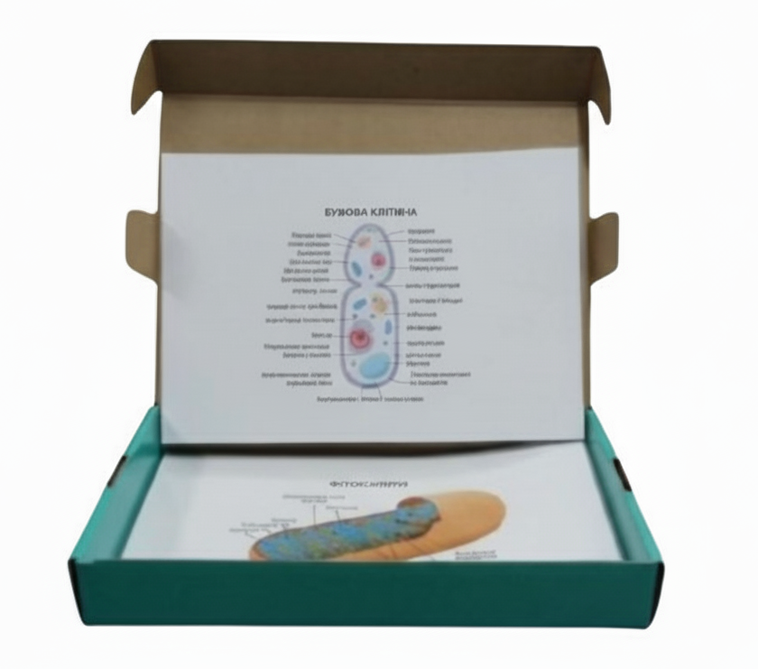 Модель використовується на уроках біології в загальноосвітній школі для вивчення та освоєння розділу «Загальна біологія». Всі картки виготовлені на магнітній основі.
