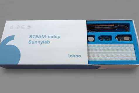Steam-набір Метеостанція без пайки (Sunnylab BE (конструктор без корпусу)). Багатофункціональний виріб, який відображає дату, час, рівень вологості, температури, рівень СО2, прогнозує ймовірності опадів. Діти отримують знання з програмування і працюють з різними модулями та датчиками. Навички: програмування, робота з модулями, датчиками та механізмами. Щоб зібрати прилад, не потрібно спаювати комплектуючі між собою, тому виріб можна використовувати в навчальних цілях багато разів.