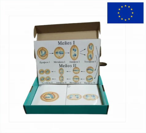 Модель демонструє процес мейозу на основі магнітних карток зі статевими клітинами, призначена для вивчення теми «Генетика» в курсі «Загальна біологія», відповідає вимогам НУШ.