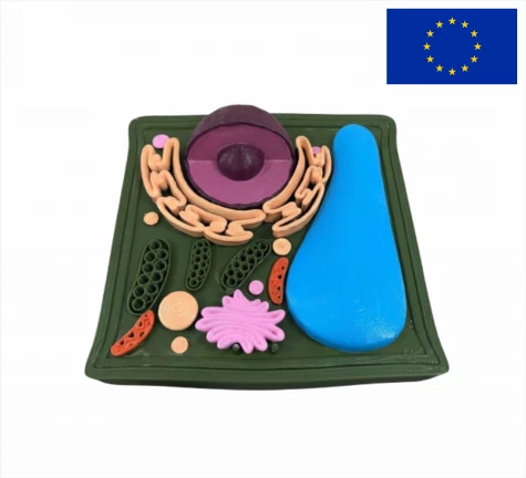 Модель демонструє зовнішню та внутрішню будови рослинної клітини та її органоїдів. Виготовлена з пластмаси, забарвлена в яскраві кольори та встановлена на підставку.