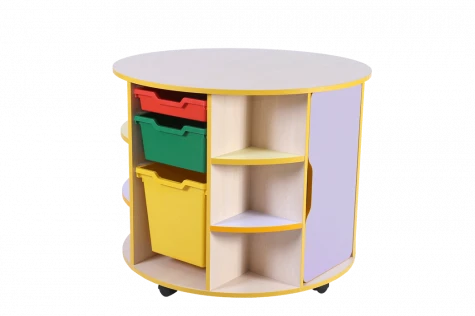 Стол «Очаг творчества ученика», предназначенный для оборудования учебных помещений. Габаритные размеры: ширина - 900 мм; глубина - 900 мм; высота - 750 мм. Стол «Очаг творчества ученика» состоит: Стойки - ДСП ламинированная 16 мм; цвет - дуб молочный. Столешница, дно - ДСП ламинированная 16 мм; цвет - дуб молочный. Полки - ДСП ламинированная 16 мм; цвет - жасмин / лаванда. Двери - ДСП ламинированная 18 мм; цвет - жасмин / лаванда. Вкладные коробки - пластмасса. Древесные детали стола из ДСП ламинированной толщиной 16 мм, а двери из ДСП ламинированной толщиной 18 мм личкуються ПВХ толщиной 1 мм только полки - 0,5 мм. Крепежные изделия имеют защитное декоративное покрытие. Установленный на колесики.
