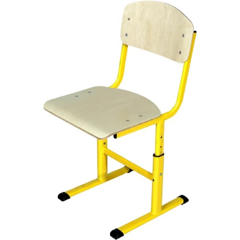 Стул состоит из древесных и металлических деталей. Древесные детали представляют собой сиденье и спинку, изготовленные из гнуто-клееной фанеры (толщиной 8-9 мм) и покрытые пластиком HPL толщиной 0,4-0,5 мм. Углы сиденья и спинки имеют радиусы закругления для предотвращения травмирования. Металлические части стула изготовлены из плоскоовальных труб 50х30х1,2 мм, 38х20х1,2 мм, 30х15х1,2 мм. Покраска каркаса выполнено порошковой полимерной краской, устойчивой к царапинам. В местах регулирования высоты имеется переходная полиуретановая втулка, обеспечивает плавность регулирования, устраняет скрип и царапины при регулировании высоты, предоставляет эргономичный современный вид. Регулирование осуществляется за счет сквозной винтовой-гайочнои стяжки с фиксацией колпачковая гайки в трубе невозможности откручивания в ходе расшатывание. На торцах каркаса закреплены пластиковые наконечники, которые предотвращают травмирование учеников и повреждение пола.